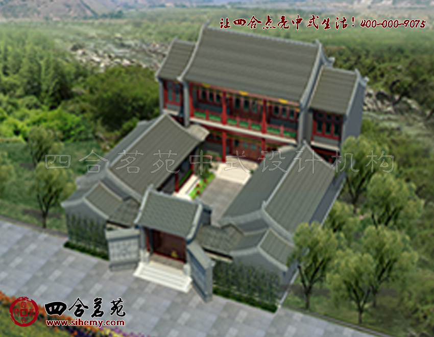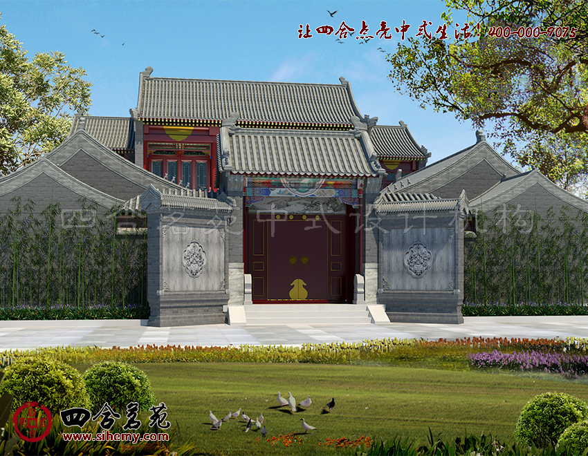 庭院中,鱗次櫛比的屋檐,構成線條,而整體裝飾在線條幾何圖形的排布中,給人幽雅與雋秀的視覺印象。